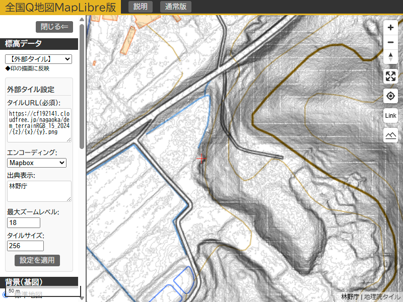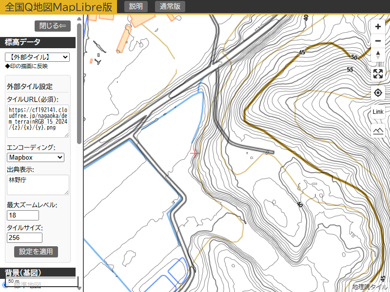 - 描画に使用する標高データ(標高タイル)の切り替えが可能です。